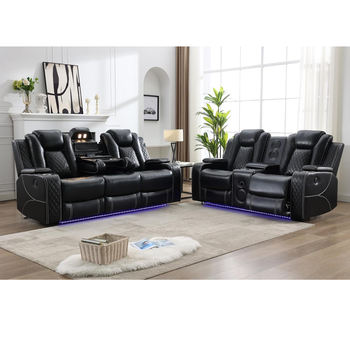 5 Seater Faux Leather Power Recliner Sofa Set with Drop-Off Table, Wireless Charger & Type-C, Loveseat with Bass Speaker