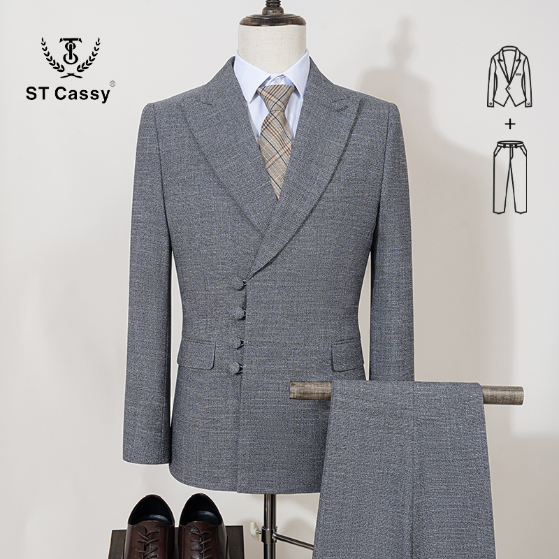 2025 high-quality thin banquet wedding handsome trend plaid fashion business casual two-piece set