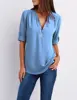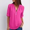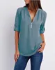 2025 Hot Sale Women Cool Loose Shirt Deep V Neck Chiffon Fashion Blouse Casual Ladies Tops Sexy Zipper Pullover Plus Size