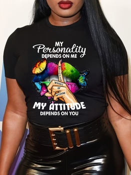 Worth Letter Print T-Shirt, Short Sleeve Crew Neck Casual Top For Spring & Summer, Women’s Clothing