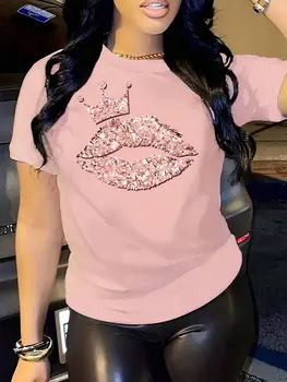 Tie Dye Print Plus Size T-shirt Women’s Casual Fashion T-shirt Summer Women Harajuku Round Neck Outdoor Popular Ladies Tees Tops
