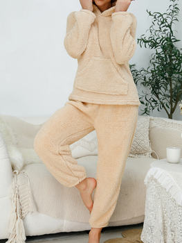 Autumn and Winter Women’s Warm Thick Velvet Pajama Set, Round Neck Long Sleeve Top and Pants, Women’s Pajamas and Home Clothes