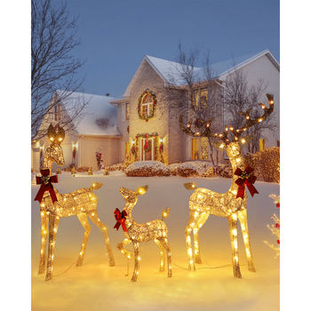 Indoor Outdoor Large Lighted Christmas Deer Family Set Front Yard Porch Holiday Decoration with 160/210 Warm White LED Lights