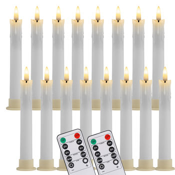 Flickering Led Taper Candles with 10-Key Remote Flameless 3D Wick Electronic Window Candles for Christmas Wedding Valentine Day