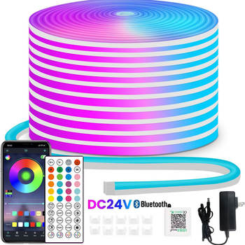 DC 24V RGB Neon Led Strip Light With Bluetooth 30 Meters Outdoor IP65 Waterproof Neon Rope Lights App Remote Control Band