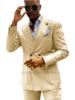Casual Summer Linen Slim Fit Suits for Men Double Breasted Peaked Lapel Man 2 Piece Outfit Set Blazers with Pants Wedding Suits