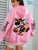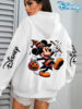 Disney Authorized Mickey Halloween Hooded Sweatshirt, Women’s Casual Jacket, Magic Hat, Pumpkin Print Trendy Autumn/winter Top