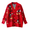 Disney Knitted Cardigan Korean Mickey Cartoon Sweaters for Women Coat Female Autumn and Winter Loose Wild Thicken Kawaii Tops