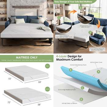 Queen Size Gel Memory Foam Sofa Mattress, CertiPUR-US Certified, with Removable and Washable Cover, Ideal for Guest Rooms and So