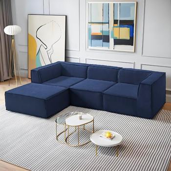 U-Shaped Sectional Sofa,130-inch 4-Seater Chaise Lounge with Striped Corduroy Fabric Customizable Living Room or Bedroom Couch