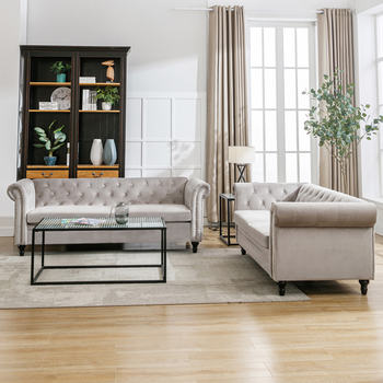HORGAEO Button Upholstered Velvet Sofa, Classic Chesterfield Tufted Camel Back Furniture Sets