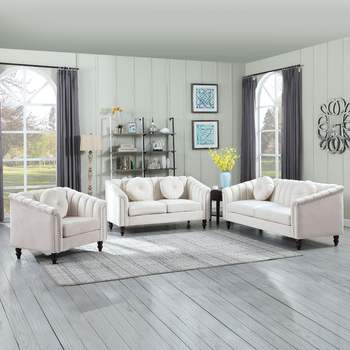 White Microfiber 3PCS Sectional Sofa Set with High Density Sponge and Double Spring System for Modern Living Room Luxury Comfort