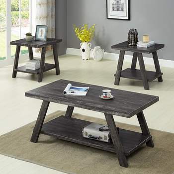 Furniture Athens Contemporary 3-Piece Wood Shelf Coffee Table Set, Charcoal