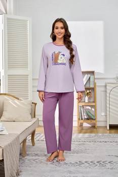 Spring, Autumn and Winter Long Sleeve Purple Cartoon Casual Women’s Home Clothing Pajamas Trousers Two-piece Set