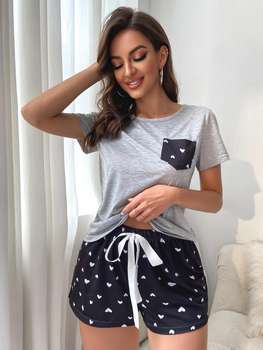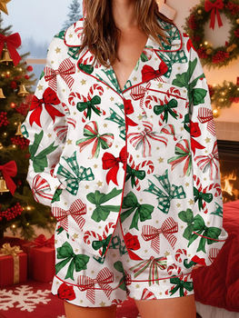 Women s Festive Holiday Pajama Set with Long Sleeve Lapel Shirt and Wide Leg Shorts in Christmas Print Sleepwear Collection