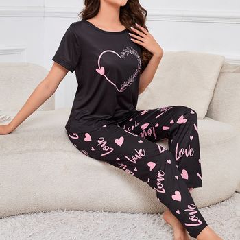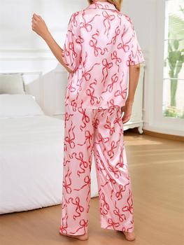 Women’s Pajamas Set Bow Print Long Sleeve Top And Trousers Sleepwear 2 Piece Set For Women Soft Casual Suit Loungewear