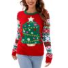 Women s Christmas Tree Sweaters Star Embroidery Long Sleeve Round Neck Pullover Casual Knit Tops