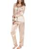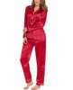 Womens Silk Satin Pajamas Loungewear Two-piece Sleepwear Button-Down Full Sleeve Long Pj Set